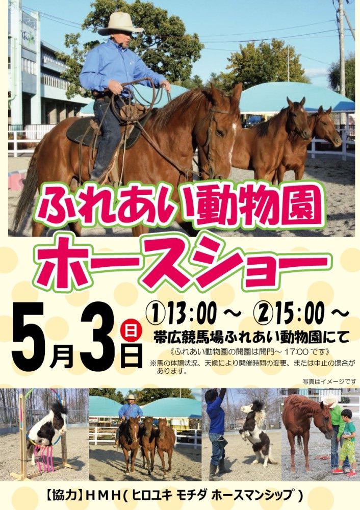 帯広競馬場ふれあい動物園ホースショーの日時が決定いたしました。